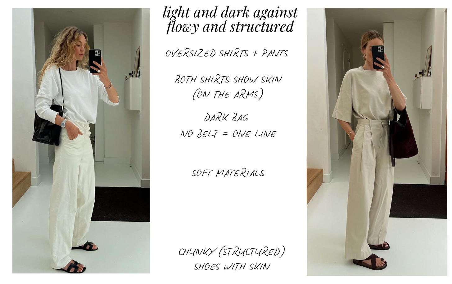 I would always prefer a structured bag over a slouchy bag because my looks often consists of flowy materials and oversized silhouettes.